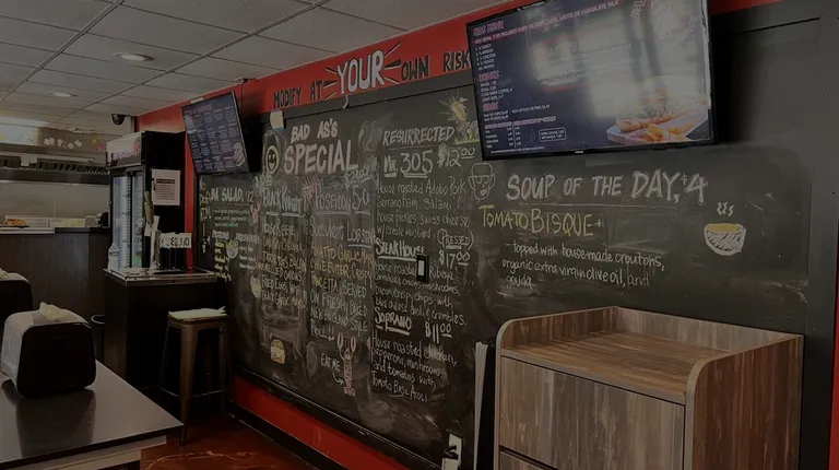 The menu TVs and wall show the variety of options.