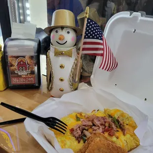 Came in 1st time. We noticed Bagel.Barn while walking along the street. We Googled it and saw you can order ahead of time. We decided to walk in. We were helped right away from the nice lady. We ordered 2 waters. Western omelet w cheese and 3 hashbrowns. Scrambled eggs w hashbrowns bacon, cinnamon raisin bagel toasted w strawberry cream cheese. We.noticed a line.after we ordered but that went away very quickly. The man and woman got it handled!!!