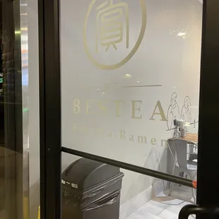 the entrance to a restaurant