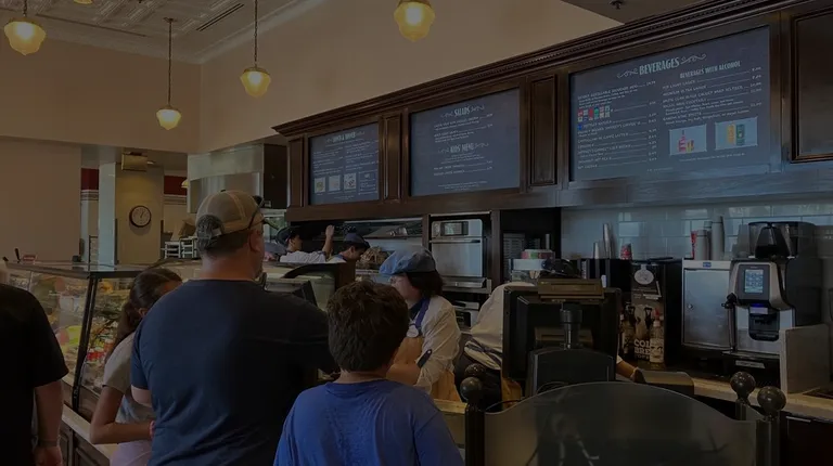 Food was meh. But of course this is Disney, what can you expect. Bagels felt a little dry. Food was just edible. I'd recommend going off site for a good bagel sandwich! The pastry was really yummy there though!