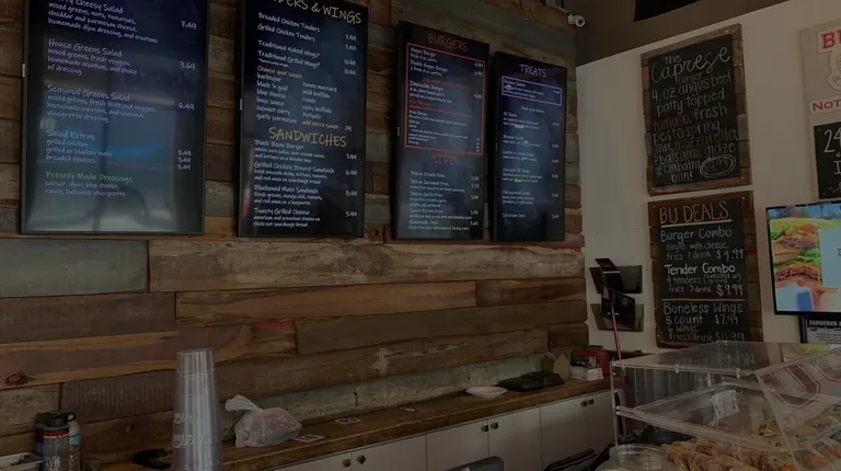 I came to Burger U for dinner with an old professor one evening, and it was right after Spring semester, so it was kind of a ghost town, so there was plenty of seating to choose from, and there were plenty of seat variety, too. Stools, normal chairs, outdoor seating. Anyone's seating preference would be satisfied here.I found a seat, waited, and when my prof showed up, we went up to the counter and ordered. I knew I should have ordered a Burger at Burger U, but the nice girl at the register and I had a conversation, and we ultimately decided that the best option for me that night would be the wings. They come in batches of 10. Sounded good to me. I get my wings half-and-half, five one flavor, five another flavor. Don't ask me what flavors I got, it was way too long ago. But I do remember the wings were very good! Crisp, moist inside, of a decent size. The only criticism I had for the wings was that neither flavor really hit me, because they were undersauced. I understand rising food costs, but wing sauce it not where to cut the budget. Regardless, the flavor was there, and I ate them all without complaints, so I'll take it and give this fun little place that I really enjoyed going to in school a five stars. I'll probably be back under the right situational circumstances.