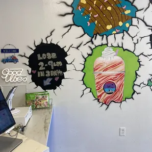 a mural of ice cream and desserts