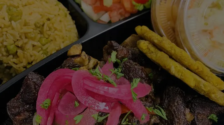 Jerk Wings Meal, Fried Green Plantain, Lovely Crazy Mac, Tender and Juicy Fried Goat (Regular)