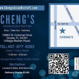 Definitely recommend chengs! Very good portion sizes, good value; good service. We usually order the general taos dinner combo.