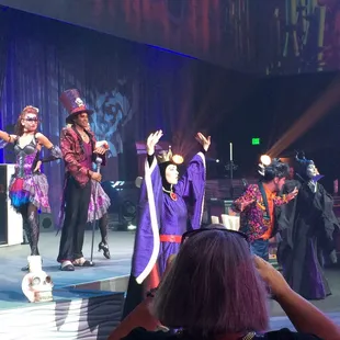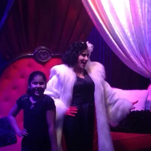 Club villain was awesome!! The DJ spinner all of the popular hits and kept the dance floor packed all night! The dancers and Kanzo were so entertaining. Kanzo can sing!!!! You have to see it for yourself! The villains that you meet are Cruella devile, Queen of hearts, evil queen, and Maleficent. When you walk in you get a glass of champagne and an invitation to when you meet the villains. Upon entering you are welcome to hit up the bar where each villain has their own specialty drink. The evil queens drink is stout!! They also have beer and wine, as well as coke products and water for little ones. You can also belly up to the buffet and let me tell you the shrimp is so good!! As well as the beef tenderloin. Each villain also has their own desert. I highly recommend Cruellas desert. You can take pictures on the thrones of each villain. The event takes about 2 hours and it's so much fun. The villains perform, Kanzo and his dancers keep you entertained, and everyone drinks and dances to their hearts content. The price tag is $130 per person no discounts for children. We found it was well worth it to sit down, relax, have fun, eat a great meal and drink, and meet the rare villains with great interaction times.