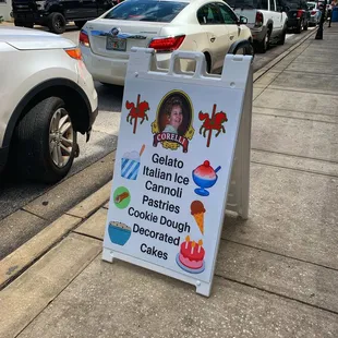 Corelli's is a cute little gelato and bakery restaurant in downtown Clermont. They have a few small tables but it feels mostly like a grab and go type establishment. In addition to gelato and individual baked goods they sell whole cakes and boxed Italian cookies. They also tossed in random t-shirts, purses and such. You are welcome to same the gelato before making a decision. It took my husband several tastings before he settled. I went straight for the chocolate and loved it. When you check in with Yelp you will receive a free cookie.