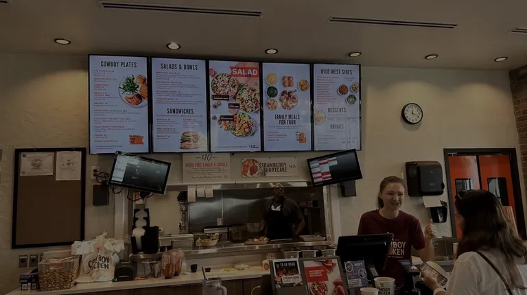 I promise you won't be disappointed eating here or ordering TO Go!!This is a Texas based company so they know their chicken! They have rotisserie chicken that is so delicious! Our sun lives the pulled pork and my daughter in law loves their salads. Our grandsons 5 & years old love it here as well My husband and I come every week and so does our son and his family!