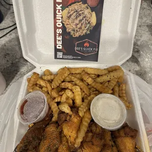 The homemade Alfredo pasta is so creamy and delicious and the wings are fried to a crisp. I enjoy Dee's Quick Fix so much. 10/10 every time I order Dee knows I have a severe allergy to shellfish and does an amazing job to make sure he is not cross contaminating!!!