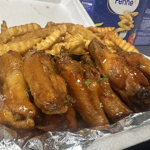 Wings, fries, and Dee's famous lemonade!!