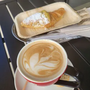 Fantastic latte and a great selection of snacks and desserts.I've been waiting for this cafe to open, it's so refreshing to see a small business in the sea of big corporate coffee options. The owner was so kind and a pleasure to meet. My husband and I both ordered hot lattes and they were exceptional. Spot on temperature, had a fun little design and the perfect balance of coffee to milk ratio. The pistachio croissant looked like a work of art. My husband tried it and really enjoyed it, the pistachio filling was a nice compliment to the flakey, savory croissant. I'll have to check for gluten free options next time. They have a lot of indoor seating and a few tables available outside. I'm so happy to see this cafe in our community. We will definitely return soon!
