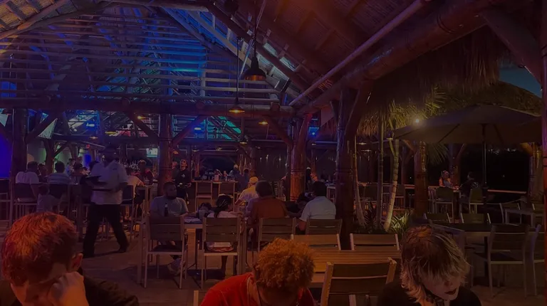 We are staying in the area for a month. We came here quite a few times. During cooler or windy days, they have screens they slide down.. and heaters. We were plenty warm. Staff were friendly, two managers came to check on us at different times. Very pleasant and welcoming . I had the tuna Poké bowl several times and the Aloha curry meal.. with fish, mussels, and shrimp. I loved them both. Great spot on the canal, we have seen dolphins most of the times.. seems like they are out more later in the afternoon.Ambience is great with Tiki lights lining the boardwalk, thatched roof over restaurant. Enjoyed entertainment, Friday, Saturday, and Sunday afternoons.Pet Friendly!