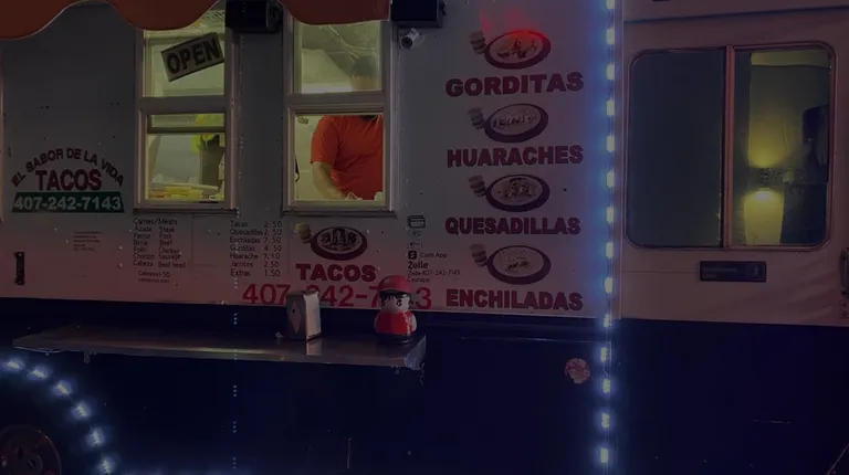 The first Mexican food truck I've sampled in Orlando, El Sabor De La Vida Tacos loosely translates to The Spice of Life Tacos! This is the real deal when it comes to no frills, authentic Mexican food. The menu is simple. Tacos, Hearty Tacos, Quesadillas, Enchiladas, Gorditas and Guaraches. You have a choice of steak, marinated pork, roast pork, sausage, chicken and beef tongue to stuff your taco with. If you want a Hearty Taco, they will gladly throw in some Choriso (sausage) with your meat of choice. Thus doubling the size of your taco, pow!I went ahead with 4 Tacos (marinated pork, roast pork and steak), a steak Gordita and a chicken Guarache. Sadly, a lot of Mexican restaurants are surprisingly bland. This place? The tacos burst with flavor. I don't know what they marinate their meat in, but the spices they use will make your tongue dance. Your body will surely follow. Juuuuust enough heat to know its there while maintaining a savory after taste. To me, the Gordita was the same as a Taco, except it the ingredients were placed inside a pocket like shell. The Guarache, (meaning sandal for it's shape) is an oval shaped, deep fried masa flatbread, then topped with lettuce, onion, copious amounts of your choice of meat and my favorite part, Queso Fresco. The masa gives the dish more of a heavier bite then your typical tortilla and the small crumbly, cheese curds of Queso Fresco carry a slighly acidic tang. Which reminds me of a mild Feta cheese. Delicious.Your meal comes with Limes, Radish, homemade Red Salasa and Salsa Verde. Salse Verde being the slightly more spicy of the sauces. They're only open on the weekends from Friday through Sunday night. A bit out of the way on West Colonial, but worth the trip. Arriba!! Andale, andale!!