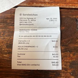 The real prices are a lot higher $$$$$ -20 each carrucho sandwich -1.50 eachFlavor fantástico !!!