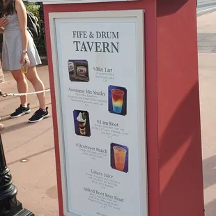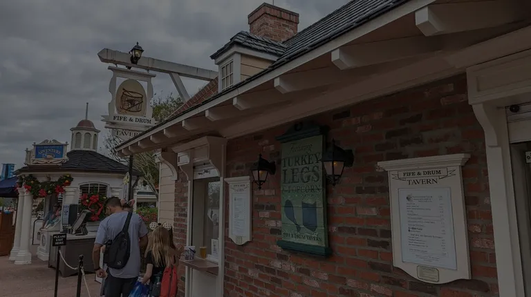 I good place for a snack or meal near the American Pavilion at EPCOTTo access this and any part of the park, you need to have a ticket. Parking for the park is one large lot on the north side of the park. You walk to the entrance after passing through security and the gate tickets you are standing in front of Spaceship Earth (the big silver ball. The Fife and Drum is a stand-alone building in front of the American Pavilion on the south side of the lake (world showcase lagoon) at EPCOT. I have passed by this place for years as I have walked around EPCOT. Many times I have seen people with meals of massive turkey legs that I feel certain came from this location. On the latest walk around the lake at Disney Park, I decided to try this place for a root beer and popcorn. I am glad that I did. There are 2 windows. The one on the right was for ordering and the one on the left was for pickup. The menu is in the center column between the windows. The price for the popcorn and root beer was $10. The staff was friendly and the order was delivered quickly. This is a good place if you want a snack or meal in the park. Enjoy!
