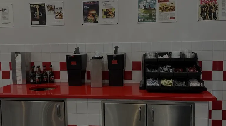 the front of a five guys restaurant