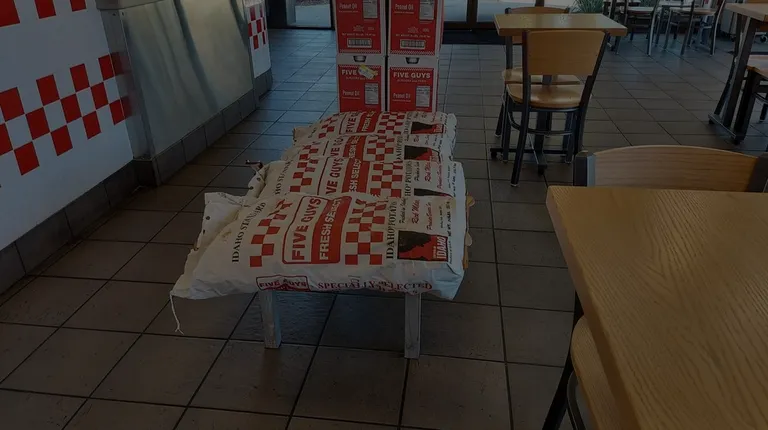 This Five Guys is pretty average. The restaurant was very clean and organized. Our cashier had poor communication skills but the associate cleaning the restaurant was very personable and pleasant. Two of us ordered a BLT with small fries and the third person ordered a cheeseburger. The cheeseburger was cooked perfectly and taste great. Both of the BLT sandwiches disappointed. The bacon taste burnt and crumbled when you bit into it. The pieces of bacon turned into many pieces that kept falling out of the bun. It was like eating a sandwich with a pile of baco's bacon flavored bits poured over a single tomato slice and some lettuce. I would never recommend this sandwich at this location. All three fries were cooked to order and were very good.