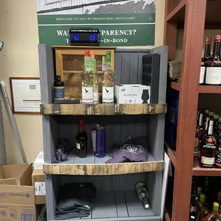 a shelf of liquor