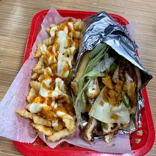 Start off the person at register was very friendly and helpful I told him when I was looking at getting loaded fries that I don't eat pork and said it's halal which is great and loaded fries wasn't overly season like other restaurants pizza was good and chicken wings where good too !!!!