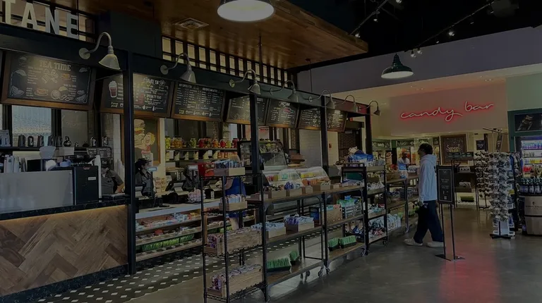 This is located in the lobby of the Disney Dolphin Resort across from the front desk. It is open until 11pm usually. They have sandwiches, $5 muffin, and Mickey waflles that I think were sbout $11 despite the size. They also have scoops of candy, froyo, and grab and go options like chips, salads, and drinks. They even have bottles of alcohol plus a coffee shop. Friendly staff. It's a pretty small place so while they have some tables inside don't be shocked if they fill up so you end up eating in the lobby area since there are tables there too. Seems clean and mostly stocked. They did run out of dairy milk cartons so we had to get a plastic cup of milk instead. Overall a bit overpriced but convenient.