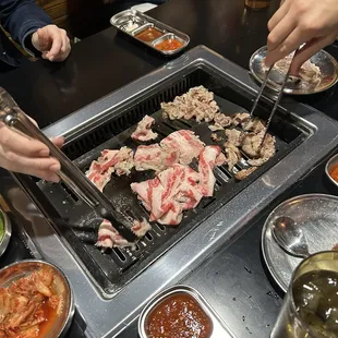 We love this place! It's so yummy!! we usually get so many cheese, corn and steamed eggs that it's comical. I could honestly go there and just eat cheese, corn, and steamed eggs and beef belly.They're always very quick to bring out your Next order especially when it's sides. They're also very nice about cutting up your meat for you and changing out your grill whenever you need it. This place is really good for large parties since they have big tables with two grills or three grills so you could easily accommodate large parties. We usually go with a party of four or five and sit in a booth. can't really complain because it's always a lot of fun even with a small group.