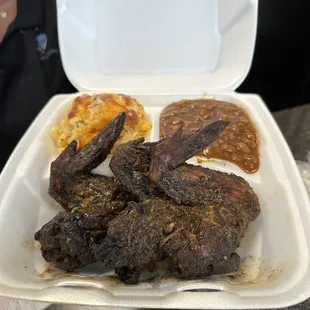 3 wing dinner (Jerk wings, Mac and cheese, and collard greens)