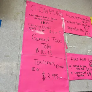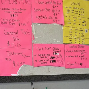 menus on the wall