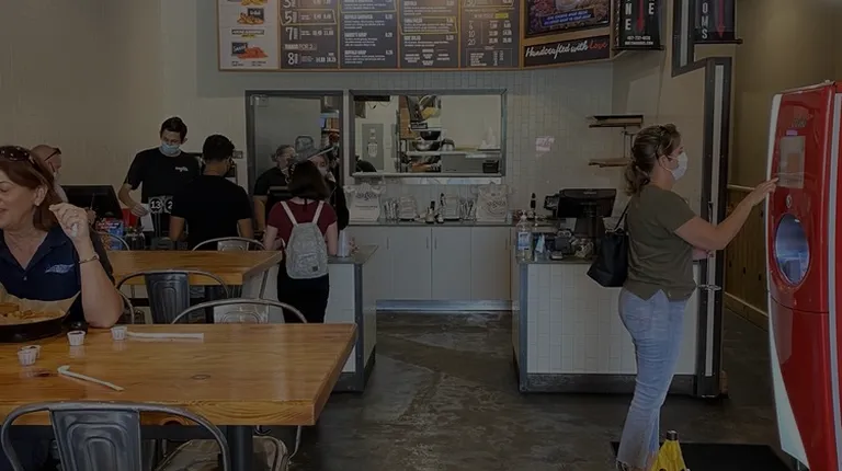 . I went inside and ordered my Huey's at the counter today and whenever I go I always order my fries extra crispy extra seasoning and today they were beyond amazing if I could give them 10 stars I would they have the best french fries around. I remember there being three girls names on the tip box. I remember sorry I couldn't remember all the other names but all the workers there are so good.