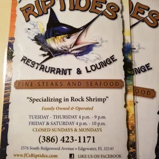 a menu for a restaurant