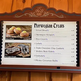 Looking for something sweet? You should go to Kringla Bakeri Og Kafe! It's located at the Norway Pavilion in the World Showcase at Epcot. You'll get to eat some traditional Norwegian specialties. Some of the bakery items include the followingKringla Sweet PretzelsSweet Lefse flatbreadSchool BreadRice CreamMickey Cinnamon Rolland so much more!My husband and I ended up getting the followingSchool Bread: Sweet Roll filled with Custard and dipped in Coconut ($4.79)Eplekake: Apple Cake with Caramel Drizzle ($4.79)When we were ordering, we informed the team members that it was our first time here! They had provided recommendations to try out! The Eplekake was amazing! It was so delicious! It tasted like an apple muffin! It was relatively large, too! The caramel drizze was scrumptious! I would order the Eplekake again! My husband enjoyed the school bread.There is seating available within Kringla Bakeri Og Kafe. It's outside, though, and overlooks the Epcot World showcase!
