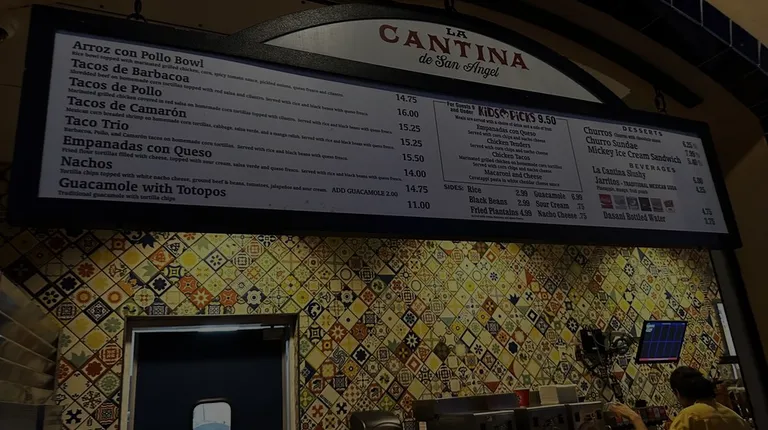 Subpar food.La Cantina is located inside the EPCOT Disney Park. There was a short line, but it was considerably shorter than other lines. And we found out the reason for that. The food is underwhelming. I ordered the empanadas and they were lacking. They didn't have much cheese inside. It was mostly air filled empanadas. The rice tasted stale. I also ordered churros, and those were equally disappointing. The macaroni and cheese was the only thing worth eating.
