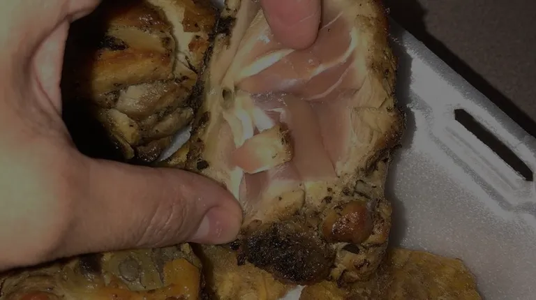 a person grabbing a piece of chicken