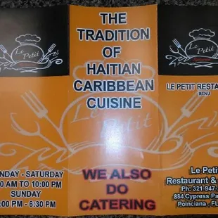 the menu for the restaurant
