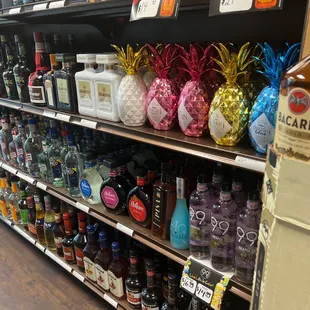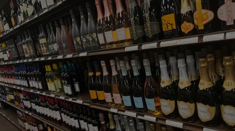 shelves of liquor in a grocery store