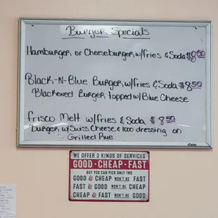 My husband and I stopped here just for a little something different. Wow! The food was really good and the prices were amazing! We ordered specials written on the board. I got a BLT with french fries, and my husband got the black and blue burger with fries. Both of us ordered the sweetest tea east of the Mississippi. The restaurant was full of regulars kibitzing with the staff, which was fun to listen to. Our entire check was less than $20. Can you even imagine?My only disappointment is that we just now discovered this place after driving by it for many years.