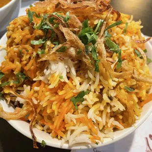Great food and great service. The space is small, with some tables outside, but the flavors have no limit. I ordered several things, two curries, a chicken biriyani, samosas and garlic naan. It was a nice meal, and thankfully the flavors and quality were all present. The weakest point was the dessert, but since the food was great, I am not taking it into account. Please read the menu before coming, take this as a friendly tip.