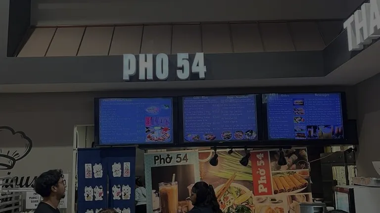 Pho 54 is located inside of Lotte Market, and I highly recommend checking it out! It has one of my favorite dishes I have tried in Lotte Market. I get the rice plate with the pork. It comes with a good portion of pork, steamed rice, an egg and a small salad. It is usually cooked really well and has a yummy sauce on it. The sauce is on the sweeter side but I am a huge fan of it.I love the salad dressing and the egg has always been wonderfully runny. I think the perfect bite is a bit of egg, a bit of pork and a bit of rice! Yum! The food comes out pretty quickly but always tastes very fresh. You order at the counter, get a buzzer and return when your food is ready. You can grab a seat anywhere in the food court and return your trays to the restaurant. Pho 54 is great and so is all of the restaurants in Lotte Market! Highly recommend checking them out and trying lots of various dishes!