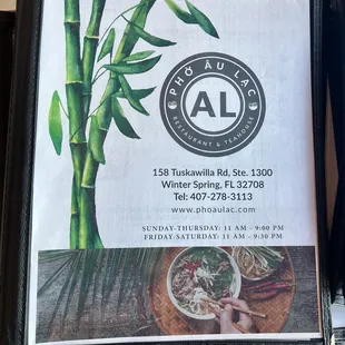 the menu of the restaurant