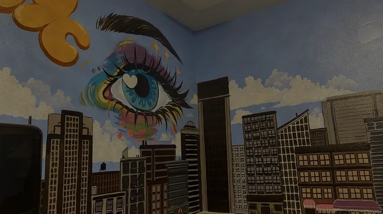 Ladies bathroom walls are painted beautifully