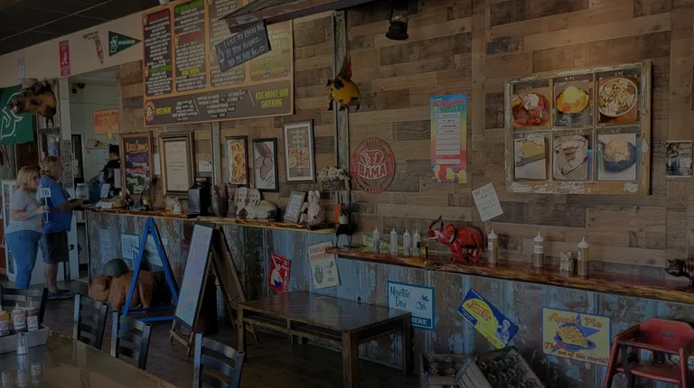 Great little BBQ place with lots of atmosphere. Order at the window and they bring it out. Server was kind and friendly. The garlic bread and corn muffins are delicious. The ribs were also very good. The Mac and cheese was not warm and a bit too creamy. The dirty potatoes were different, I couldn't decide if I loved them or didn't like them. I would probably try different sides if I get back there. But I definitely would love to go back. They serve Pepsi products. There are a few tables outside.