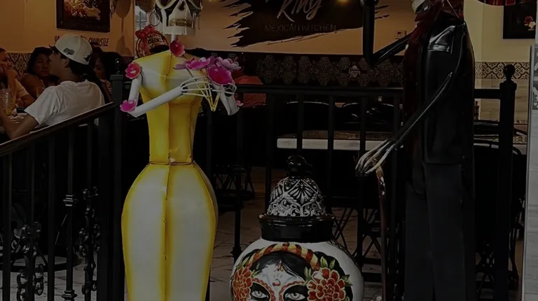3 1/2 stars. This seems to be part of a growing downtown Kissimmee dining experience. I remember just a few years back there only seemed to be a very small handful of restaurants here. In any case ... The dining area is divided into two halves, the front section being lit (as my wife said) like an airport runway, the back section being dimmer and more comfortable. The place was decorated in a Dia de los Muertos theme (we happened to hit them on the day of.) We weren't thrilled with our server, who was a bit pushy and split her time with hostessing. Because of the perceived pushiness, we ended up ordering our appetizer a few minutes after the entrees. The entrees came out very rapidly, just before the appetizer, queso dip. The chips were pretty good, not greasy, salsa was ok (not very chunky, only a hint of spice); the queso was very good, thick so it coated the chips and very flavorful. For an entree, I had the Manjar de Reyes, six different grilled meats, with sides of rice, refried beans, tortillas, pico, sour cream and guacamole. I loved one of the two steaks: juicy and flavorful. (The other was drier and blander.) The piccadillo was also good, as was the pork (kind of a shredded pernil but moister.) The other two (the chicken and the chorizo spiced meat) were bland. Dessert was the El Dorado Queens, a monstrous ice cream sundae with fried ice cream, churros, fried dough triangles, fried chips and chocolate sauce. My wife and I could barely eat half.