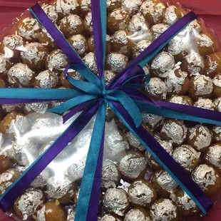 red ribbon wrapped around a silver platter
