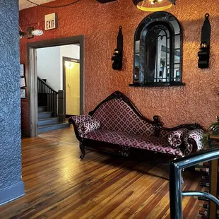 a couch and a mirror