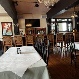 Table cloths dirty. Had a hair on ours. They just change the paper. Waiter was bar tender too. Service not great. Food was just okay. Sauce really bad. The people at the bar looked happy. lol.