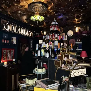 Cozy and intimite vibes and decor inspired in the 1920s this speakeasy offers delish non alcoholic drinks to enjoy while getting relax on their lounge. Love their decorations. There is a movie room with a photo booth for free. You can enjoy and take some pictures with your friends.The place is tiny so reservations are recommended. Love their drink menu great variety of cocktails, bottle shop and drinks to go. I got the trouble in paradise a tequila passion fruit margarita. It was so good. Almost you see there is for sell. Great customer service.