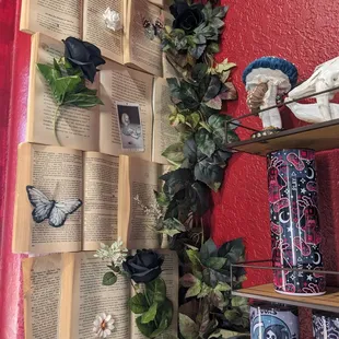 Decorative accents and products for purchase at The Black Rabbit Bookbar.