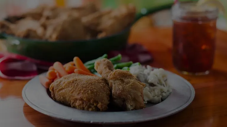 The food here is just mediocre. It is a typical quick service. It is the same food as the Hoop-Dee-Doo Review. The fried chicken is eatable but I would not say it is good. Publix fried chicken is way better. All of the deserts are VERY sweet. The BBQ is rather bland. The building itself is cute but it has very simple seating. If you want good fried chicken on property go to Art Smith's. If you want good BBQ go to Polite Pig and if you want good deserts go to Amorette's.