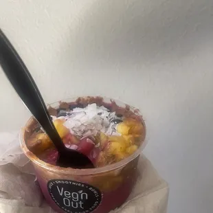 Had an overnight stay in Orlando with a zero dark thirty flight before the hotel breakfast. So I made the best of it by looking for a vegan place where I could order dinner and an acai bowl for breakfast.Man am I glad I found Vegn Out. For dinner I did a build your own bowl, choosing spinach, sweet potatoes, garbanzo beans and a few other veggies. It was delicious and fresh. Then acai bowl had berries, peanut butter and gluten free granola. Score! It also was very tasty. This place is definitely a good option for vegans and others looking for fresh, healthy and tasty meals.