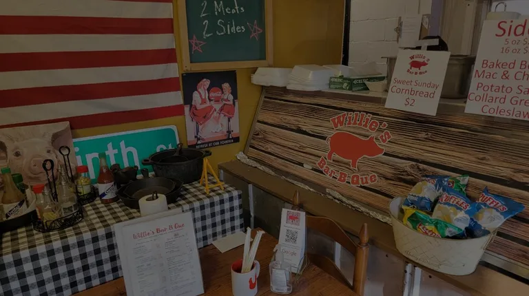 This is a local bbq place located in Monteverde. Small and simple in decor and a small area outside to sit (one picnic table or two- 2 seater tables in the front). It's a small business and black owned which we loved as we are really looking to visit more local establishments and support minority owned businesses. My husband got the meal deal (2 meats and 2 sides). He got the ribs and chicken and for sides got the mac and cheese and the collard greens. The chicken was moist and you could taste the smoke flavoring in the chicken. The ribs are what we would refer to as catering ribs. They appeared to be boiled. Easy to eat off the bone but was lacking the smoke flavor we were looking for. I got the pulled pork sandwich with the baked beans as my side. The pulled pork really didn't have any flavor to it. I was expecting a little smoke or seasoning and got nothing. They have two sauces, a traditional bbq (on the sweeter side) and a Carolina style. I like the sauce on the pulled pork sandwich as it gave it a little more flavor. The baked beans were traditional and nothing more. Parking is limited but there is additional parking along the side by black bear kitchen. The staff at Willie's truly understand what hospitality means and are all very knowledgeable and truly cares about their customers experience.