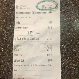 I had never tried 1010, but I am glad I did. The pizza reminded me of Greek style pan pizza. Very good. Their delivery was fast and the driver was very friendly.