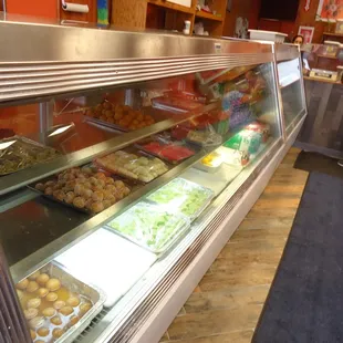 There is limited street parking and seating available. When you walk in there are refrigerated cases with all sorts of beautiful and colorful desserts. You also get a whiff of Indian spices because there is food available too. Homemade meals like biriyani and different types of curries are available. There's also snacks, like pakora (peppers dipped in batter and fried - yummmm), and samosas.However the real reason I LOVE this place is the Indian desserts and snacks! My favorites : Laddu and Gulab Jamun. I gave it four stars because I wish it was a little tidier and cleaner but i dont feel that impacts the quality of the food - just the dining in experience. I will be back for more take out though. Quality indian desserts and snacks at a reasonable price